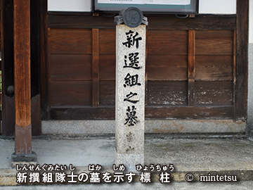 新撰組隊士の墓所にお参りする目的に限り、供養料100円を納めて境内に入ることができます。