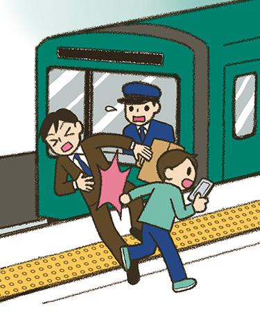 ホームから線路へ人が転落した時など、危ないことが起きた時は、駅や列車内に設置されている非常停止ボタンを押しましょう!